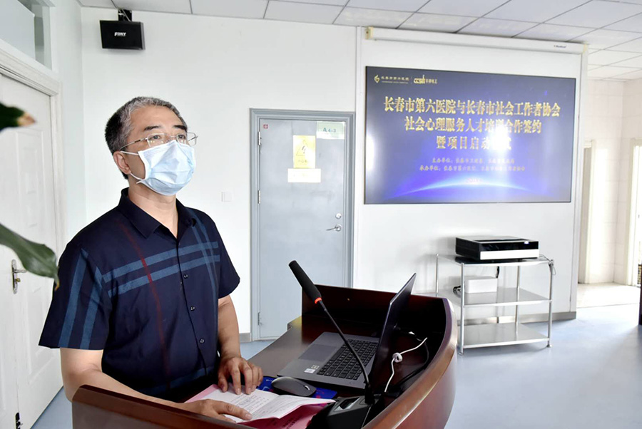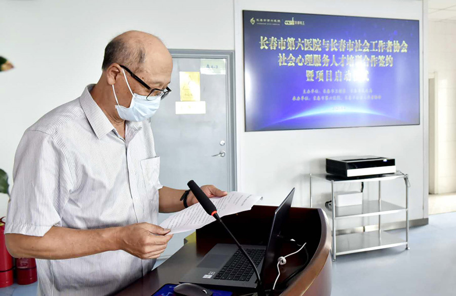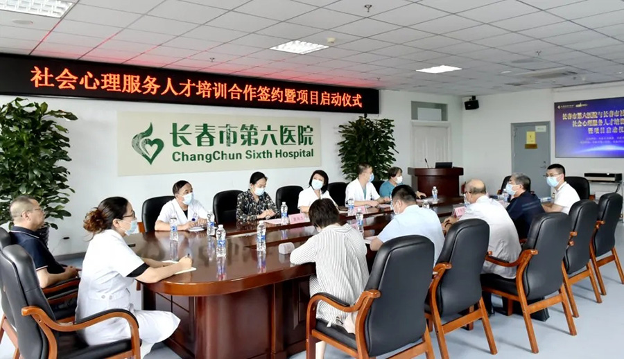 为更好地培养社会心理服务人才,8月4日下午,伦理片 与长春市社会工作者协会举行社会心理服务人才培训合作签约暨项目启动仪式。长春市社会工作者协会会长唐天正、秘书长赵晓明、副秘书长兼心理专委会主任李荣峰、副秘书长倪成旭,伦理片 党委书记、院长桑红,副院长张延赤、工会主席商海杰以及线上授课的专家代表等参加启动仪式。
