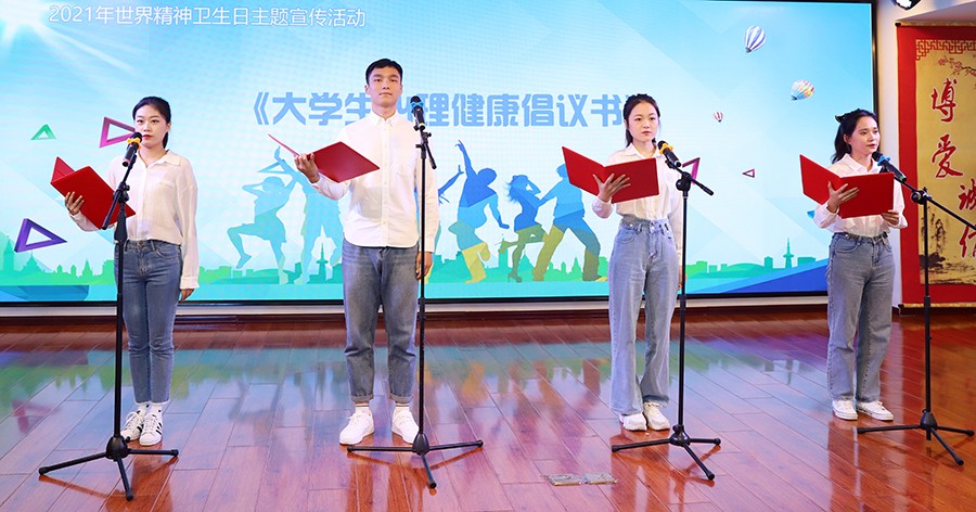 活动现场,来自东北师范大学和齐齐哈尔医学院的学生代表共同宣读《大学生心理健康倡议书》。
