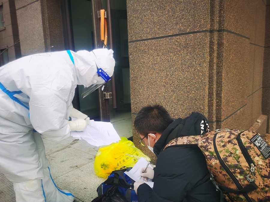 3月19日晚,团队被紧急调离农博园方舱医院,转战城开美御隔离点。在那里,侯代双先后承担了三脱间消杀、医疗垃圾处置,隔离人员药品与物品配发,协助送餐、转运、核酸采样等工作。