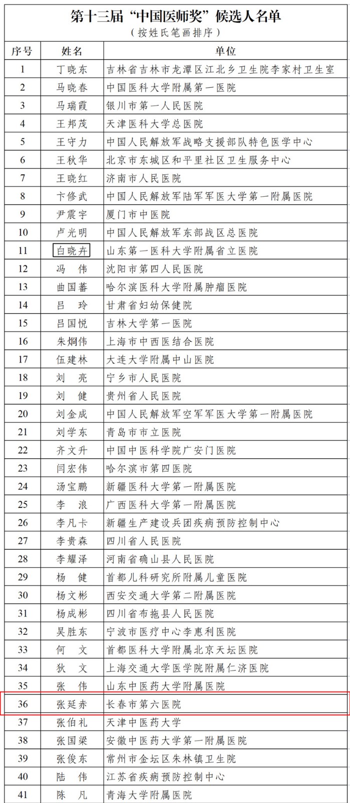近日,中国医师协会官网公布了第十三届“中国医师奖”入围名单,伦理片 党委书记张延赤位列其中。