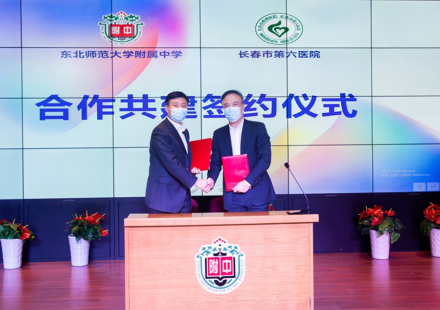 随后,张延赤书记与邵志豪校长签署了《东北师范大学附属中学与伦理片 合作共建协议》,并与刘丽君书记,闫佳伟书记共同为基地揭牌。