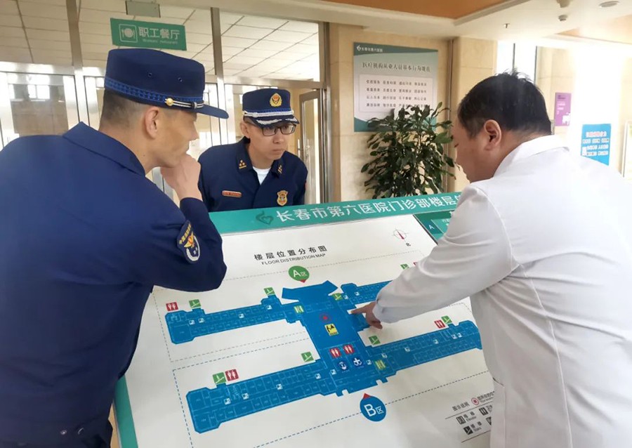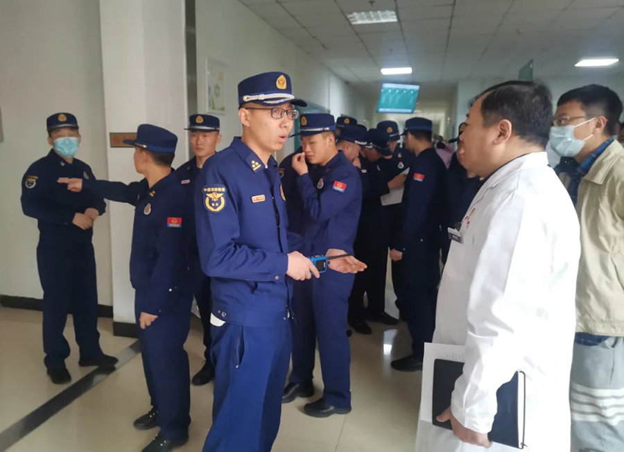 4月20日,医院特别邀请了长春市消防救援支队宽城大队针对消防隐患开展边排查边指导,并组织全院医护人员和患者进行了现场逃生路线演练。