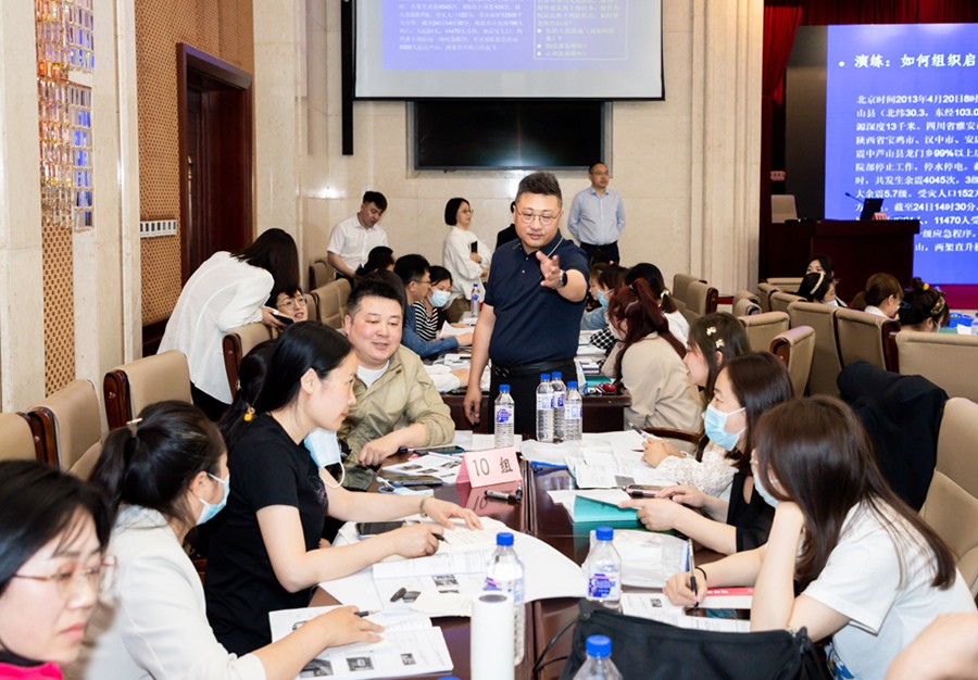 培训后,全体学员结合实际案例进行现场模拟演练,内容从危机干预启动、专业分级、响应干预、信息上报、干预终止等方面内容,对心理危机干预应急预案全过程进行分组演练,全面检验危机干预队伍应对突发事件的心理救援能力,以及各部门间的协作能力。