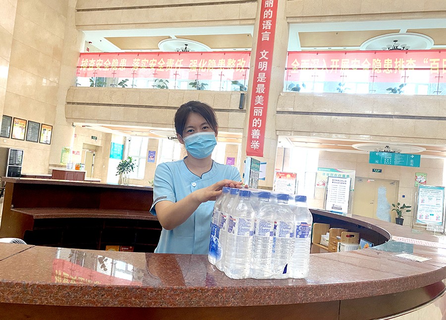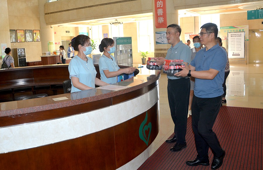 活动中,慰问组的领导们深入门诊、疗区、后勤等部门和岗位,为一线职工发放了降温饮品,为高温中默默坚守岗位的职工送上丝丝凉意和关爱。