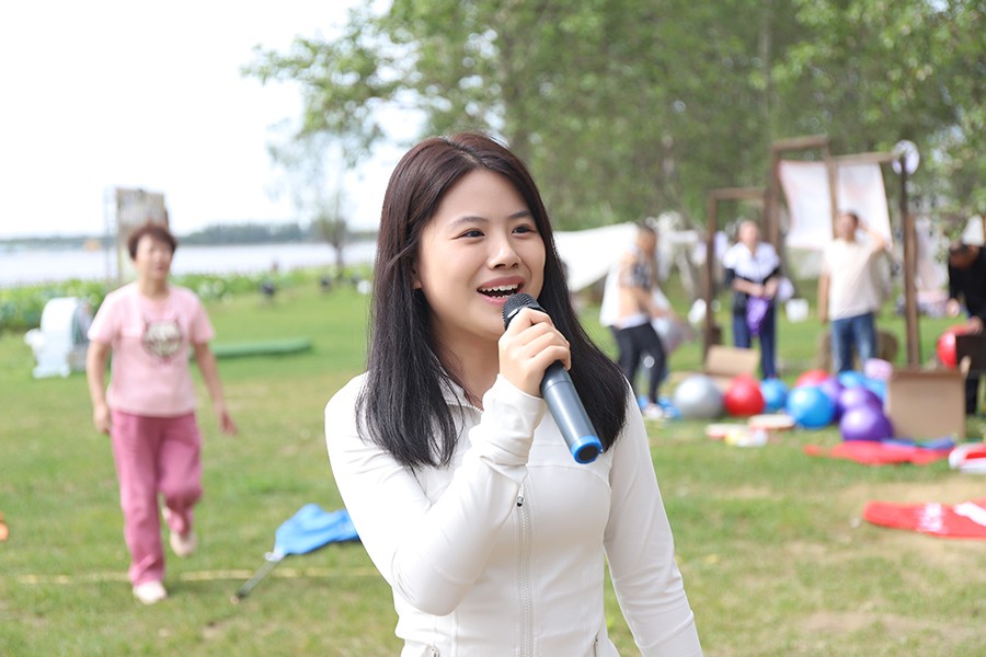 当大家走出车厢,扑面而来是满眼的湖光染翠。吸一口清新的空气,望一眼头顶的蓝天白云,脚踩散发着泥土清香的草坪,微风拂面,格外清爽……每个人的脸上都洋溢着灿烂的笑容,每一步都踏出了健康与自信。