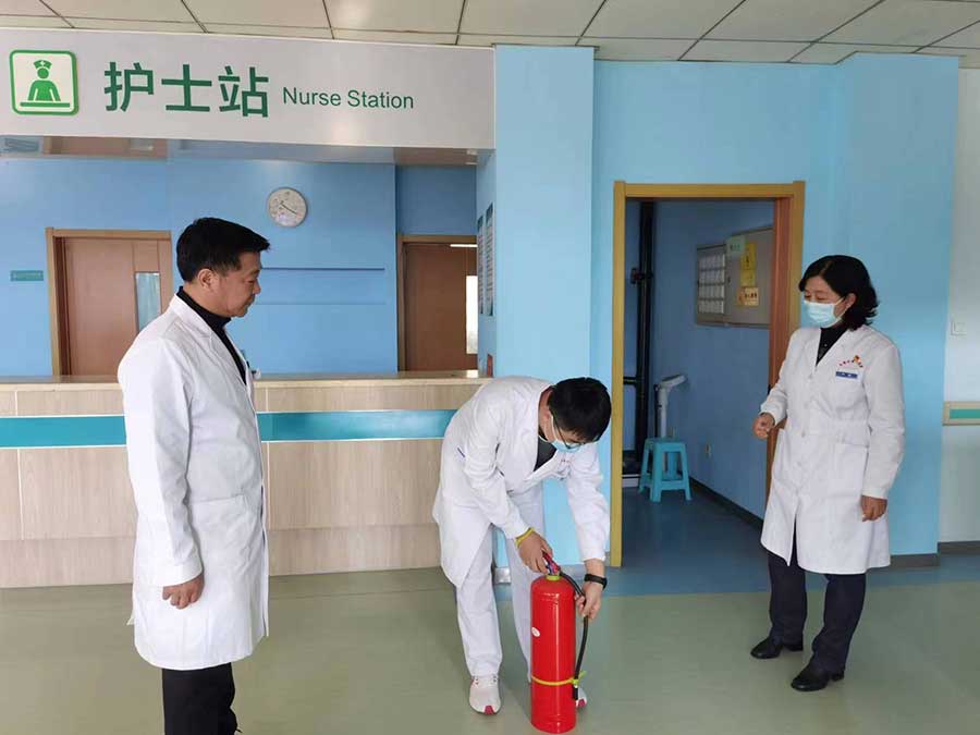 医院还聘请消防专业教官,对医护人员进行安全责任教育、消防四项能力培训、火灾案例分析和疏散逃生应急措施等操作培训,并指导各科室做好所辖范围内的安全隐患检查,强调个人的安全法律责任。
