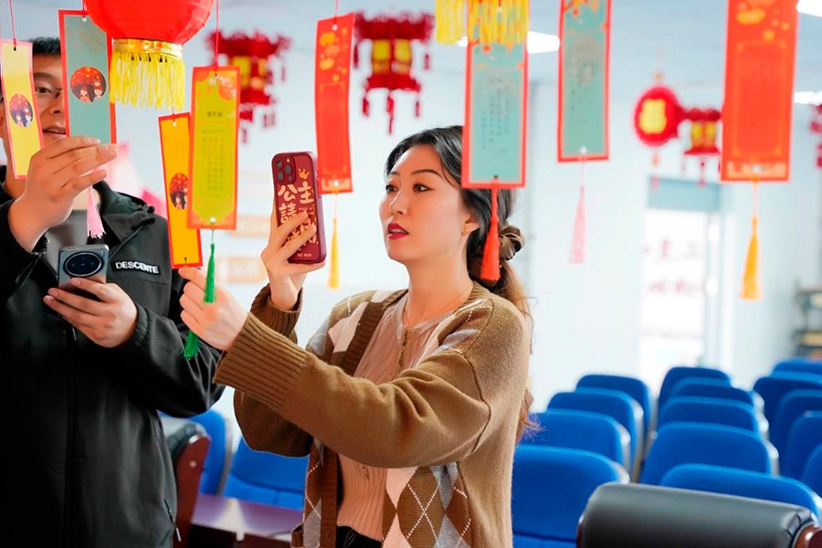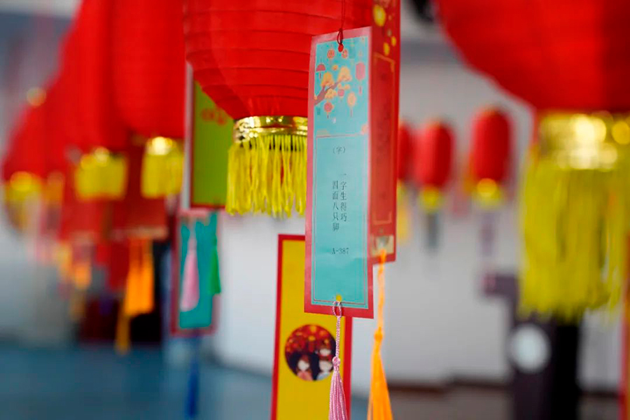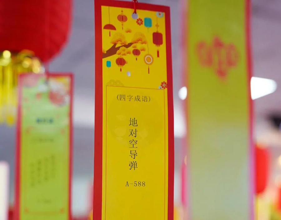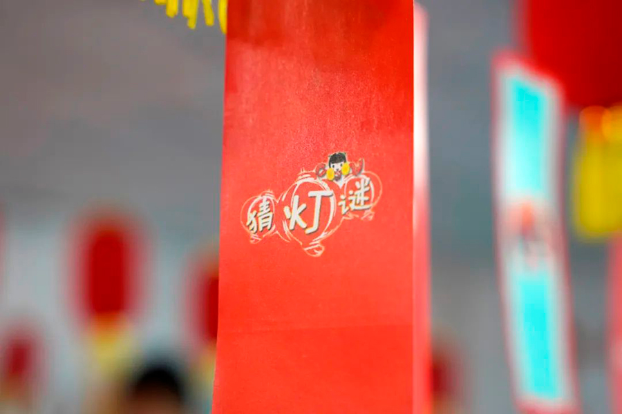 火红的灯笼、有趣的灯谜,把活动现场映衬得格外喜庆,上百条有关节日、成语、日常用品、药名等内容的谜面轻盈飘动,集知识性、趣味性、教育性于一体,让大家在猜灯谜中感受到了传统文化的独特魅力。“‘幸福的地方’,猜一座中国的城市,这个我知道!”“‘一个加一个’,这个谜底是什么呢?”……