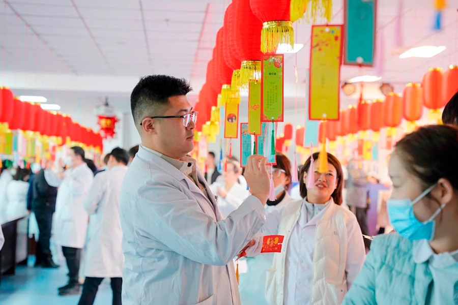 12时30分,活动正式拉开序幕,前来猜谜的职工络绎不绝。院党委副书记、院长付晶,党委副书记杨洪凯,副院长董勇,纪委书记姚远,工会主席商海杰也纷纷走到灯谜区,进行猜谜。职工们在一条条灯谜中穿梭,有的紧盯谜面,独自斟酌,有的三五成群,对着灯谜激烈讨论,有的因猜中了谜底而欢声雀跃,兴奋地跑到兑奖处领取奖品,场面十分热闹,欢声笑语不断。