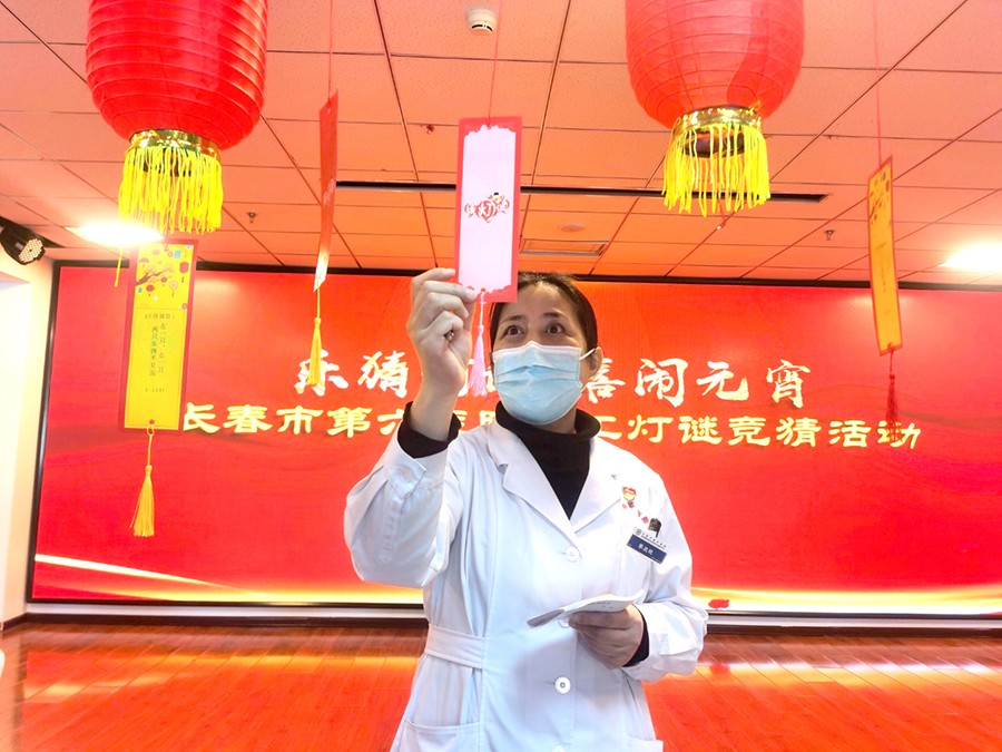 “我答对了3个灯谜,非常开心!明天就是元宵节,希望患者能够早日康复,同事们家庭幸福,医院越来越好!”精神科二疗区护士长王晓光说。
