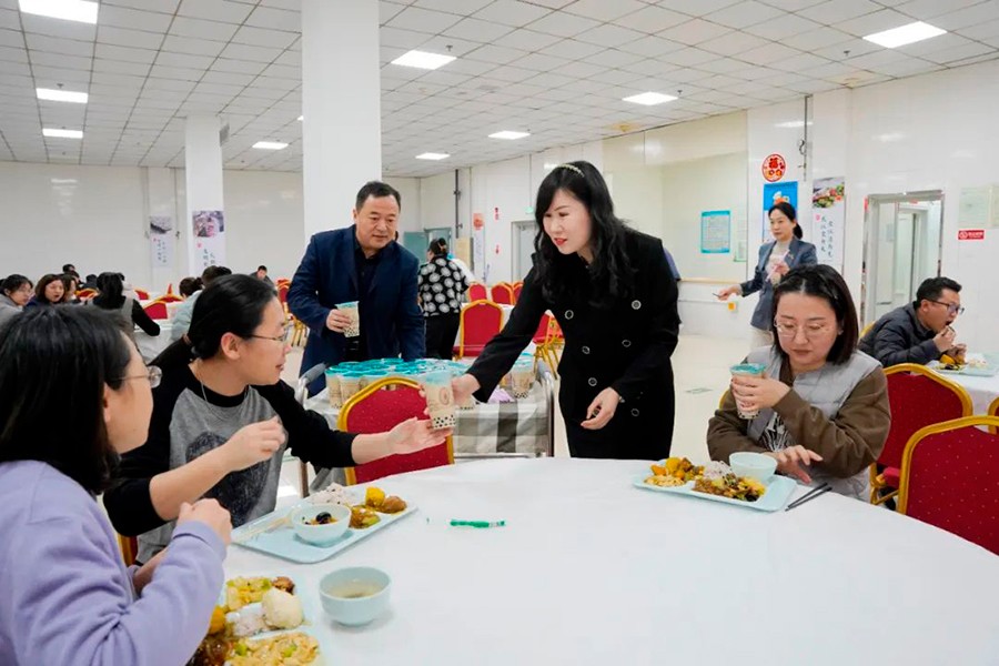 一杯奶茶,总能让人元气满满。3月8日,营养科为女职工们精心准备了一份“暖心奶茶”,为节日增添了一份暖意。党委书记张延赤、党委副书记杨洪凯、纪委书记姚远、工会主席商海杰为女职工们送上暖心奶茶。一杯杯热气腾腾的奶茶不仅是抵御春寒的力量,更是院党委对她们无微不至的关心和爱护,使每位女职工在这个属于她们的节日里,都能感受到浓浓的幸福感和归属感。这份来自节日满满的仪式感,让大家心潮澎湃,欢乐开怀,这份被惦念、被重视的平淡日常,也将让工作变得激情和有趣。