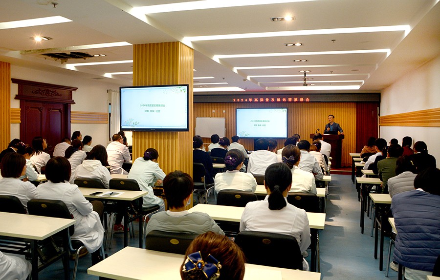 会议最后,张延赤书记结合当前医院发展现状、国家的健康战略需求,以及新时代大健康内涵,与大家探讨了医院高质量发展的重要意义。他强调,2024年医院要围绕精细化管理,以国家三级公立医院绩效考核为指挥棒,建设医疗质量好、运行效率高、可持续发展和医患满意的公立医院;要向临床要增量、找运营要效率,推进绩效分配方式转变;要以“国考”为鞭策,从“求稳”转向“求变”,推动管理向精细化转变,责权利向更明晰转变;要加强科室协作,充分整合科室间优势资源,实现联合共同发展;要全方位培养好、引进好、配备好人才,完善人才培养体系,建设想干事、能干事、干好事的干部队伍;要审时度势、创新思路、规划战略,奋力推进医院不断实现新跨越、新发展。