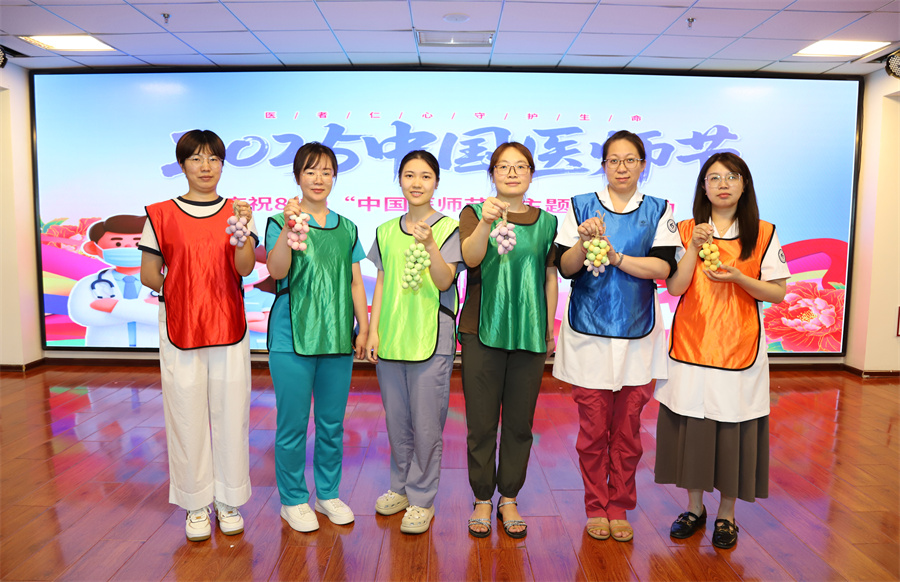 平日里严谨专注的医师们,热情高涨地投入到“医师版你演我猜”“小鸡下蛋游戏”“指尖艺术”等各项目活动中。