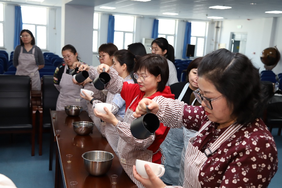 随后,在讲师的指导下,女职工们体验了从研磨、冲泡到拉花的制作全过程,感受手冲咖啡的乐趣,其间还进行了相互品鉴和分享交流。课堂上欢声笑语不断,一杯杯香气扑鼻、独具个性的咖啡,在轻松愉悦的氛围中相继诞生,成就感洋溢在每个人的脸上。