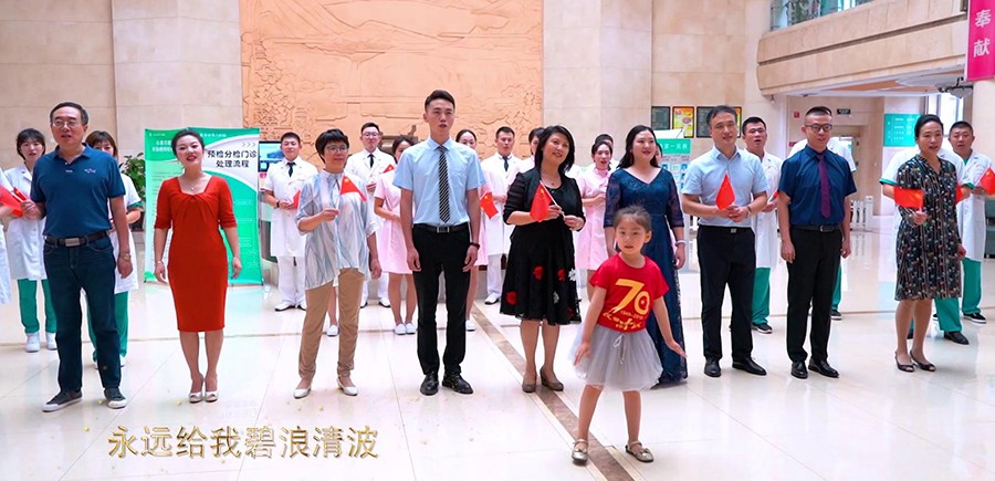 8月20日伦理片 的门诊大厅内,悠扬的歌声回荡在空中,“献礼伟大祖国,共筑心理健康”活动正式启动。伦理片 200余名医护人员、院领导班子共同唱响《我和我的祖国》,历时一个月的排练,用歌唱的方式,抒发对祖国的热爱。