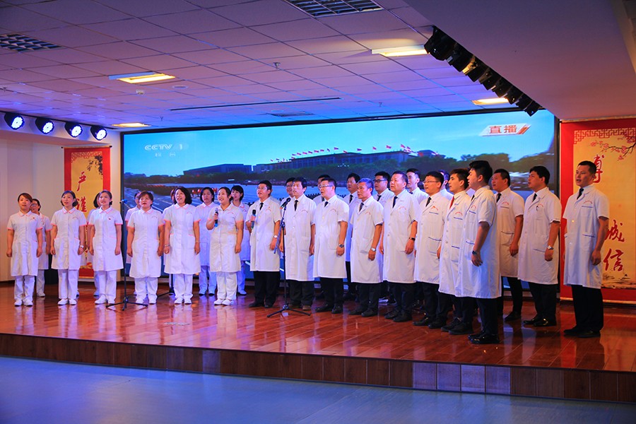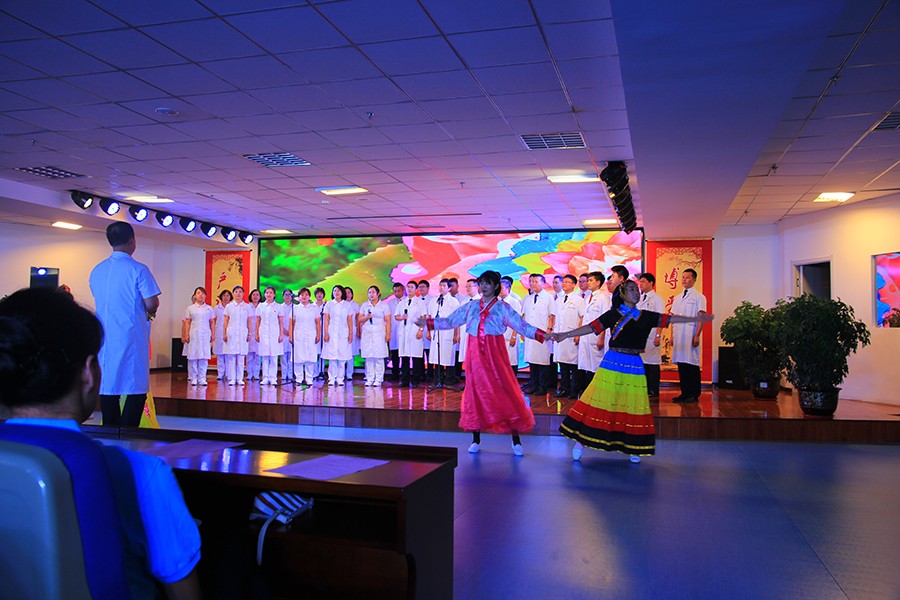 医疗支部代表队带来了《打靶归来》《爱我中华》他们用歌声颂扬党的丰功伟绩,用真挚的感情表达对党和祖国的祝愿。