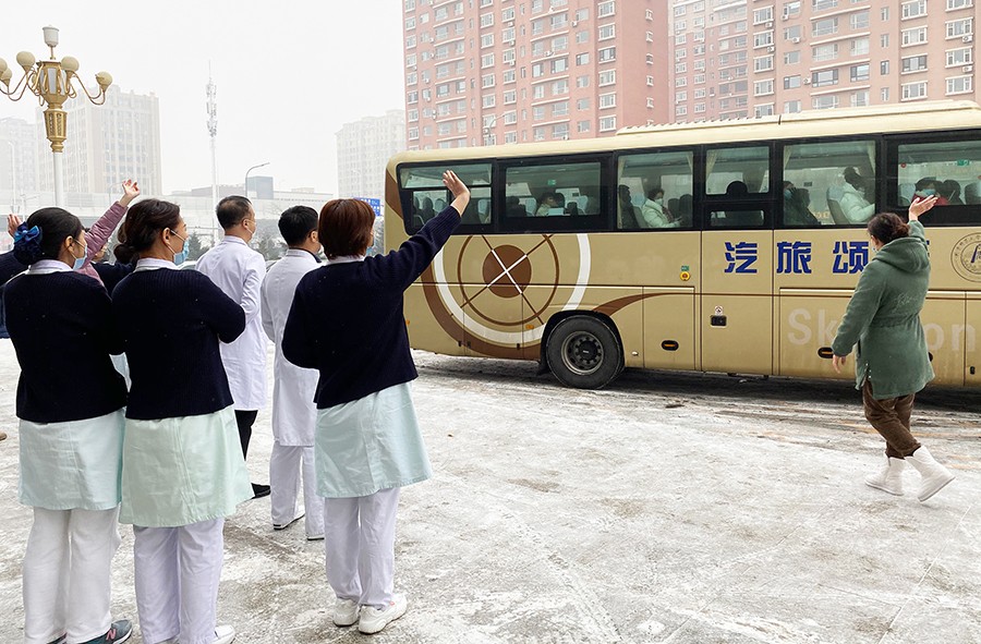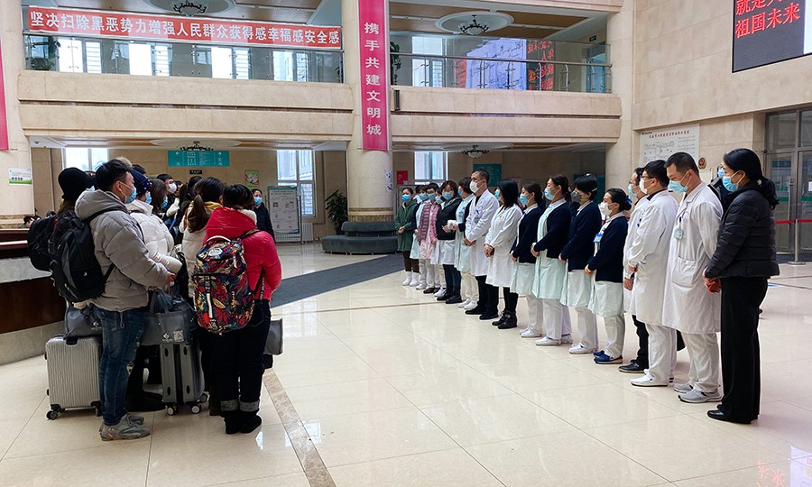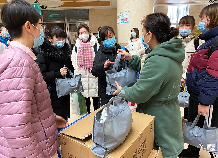 1月20日晚,临时接到通知,医院抽调了30名护士支援南关区咽拭子采集。1月21日11时30分,在医院一楼大厅举行了出征仪式,院领导和相关职能科室负责人、部分科室代表参加了仪式。12时整,核酸检测第二支援梯队从医院出发。医院工会为队员们准备了面包、牛奶等爱心食品。20日中午,党支部选派5党员志愿者为第一支援梯队的12个采集点送去了医院的关怀和温暖,尽可能让战友们的“前线之战”没有后顾之忧。