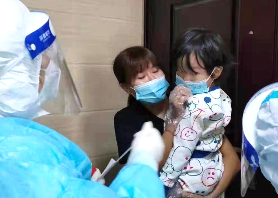 50名队员分别承担着12个社区的核酸采样工作。为缩短居民们的等待时间,队员们根据出发前制定的采样方案,合理安排流程,确保“快”“准”“稳”完成每一份核酸标本采集。针对社区老年人行动不便,队员们上门采集;对配合有困难的儿童,他们细心安抚,迅速采样,提高了采样效率。一位刚刚接受完采样的居民对我们的护士连连称赞:“你们就是冬天里的小太阳!”