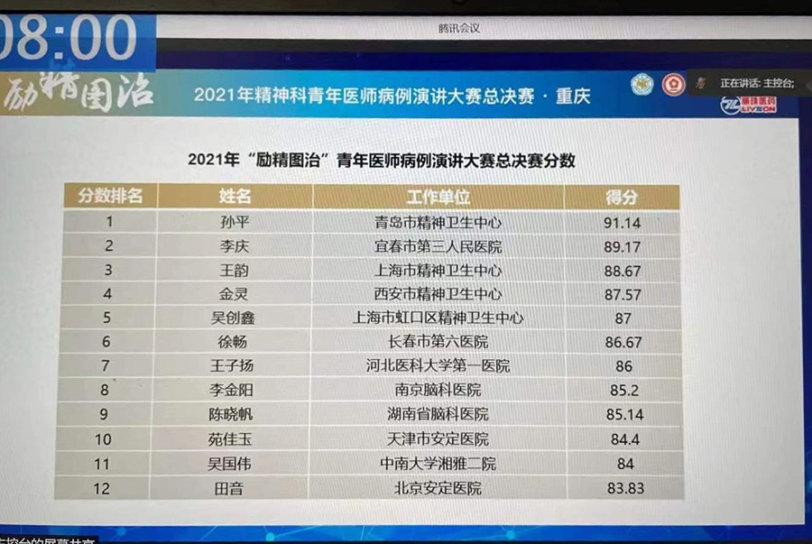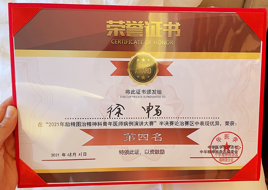 伦理片 青年医师徐畅获得“励精图治”2021年精神科青年医师病例演讲大赛总决赛三等奖