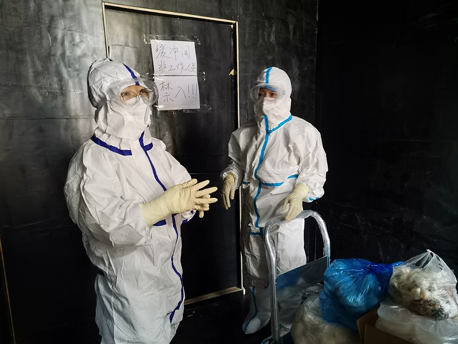 ▲每天二次的三脱间消杀、医用垃圾处理,任务艰巨,你们辛苦啦!
