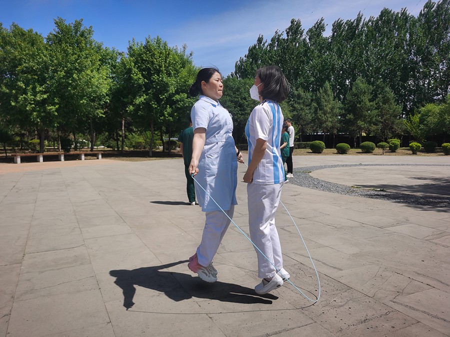 踮起脚尖,飞出地平线,左右摇摆划出一道美丽的弧线……5月12日13时,伦理片 罄苑花园内氤氲着热闹活力的气息,院工会组织的第二届“绳彩飞扬 快乐你我”跳绳拓展活动,正在这里如火如荼展开。来自机关、医疗、心理、后勤和医技公五个分会的选手究竟表现得怎么样?下面带你一睹他们的风采吧!
