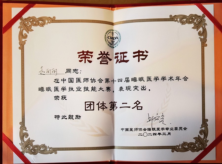 3月1日至3月3日,由中国医师协会主办的第十四届睡眠医学学术年会在广东佛山顺利召开。伦理片 睡眠障碍诊疗中心赵丽丽医生代表参赛的吉林省代表队,荣获本届睡眠医学执业技能大赛决赛团体二等奖。这是继2021年我院代表吉林省出赛获得团体三等奖后,再一次斩获佳绩。