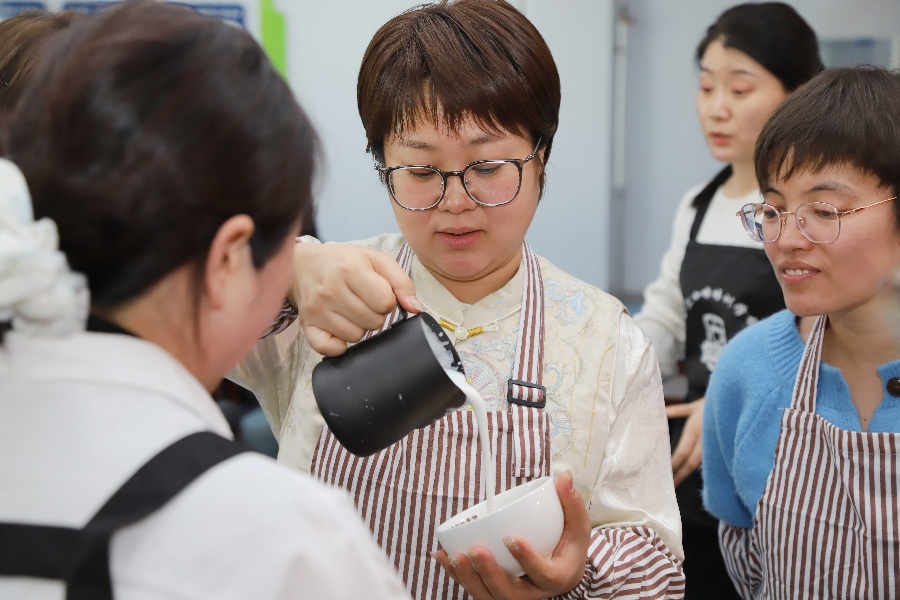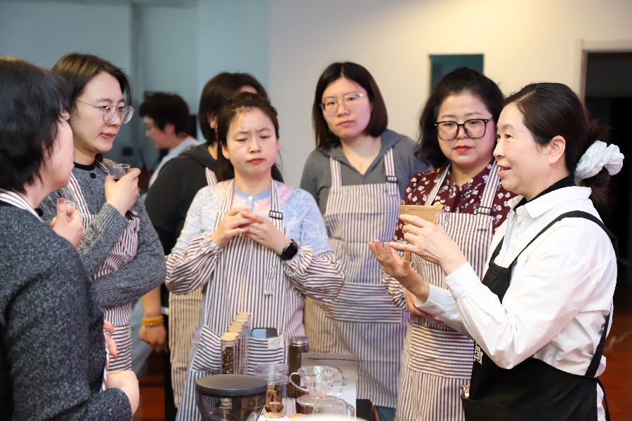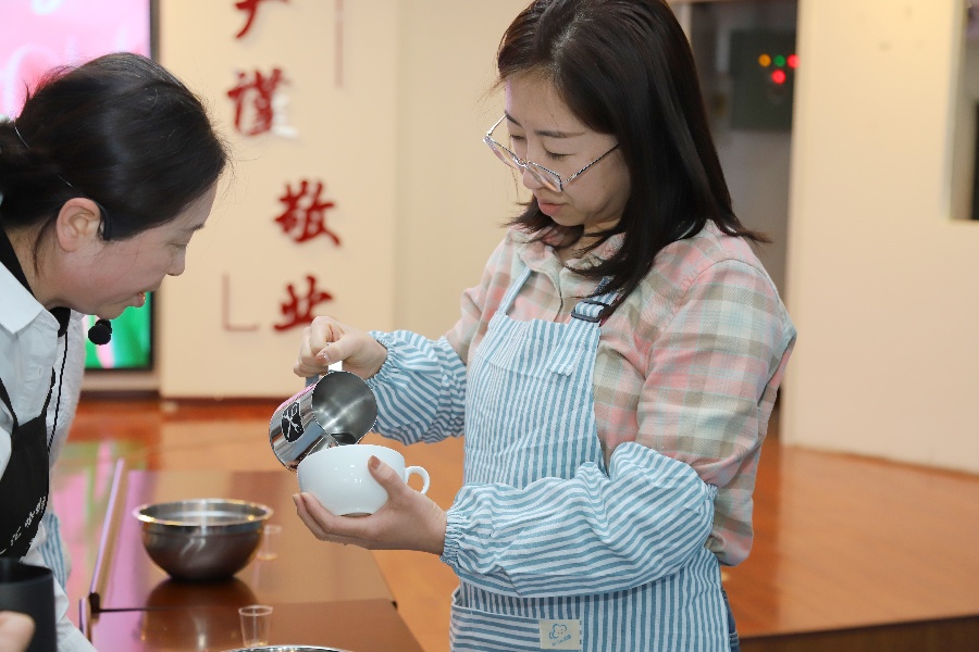 随后,在讲师的指导下,女职工们体验了从研磨、冲泡到拉花的制作全过程,感受手冲咖啡的乐趣,其间还进行了相互品鉴和分享交流。课堂上欢声笑语不断,一杯杯香气扑鼻、独具个性的咖啡,在轻松愉悦的氛围中相继诞生,成就感洋溢在每个人的脸上。