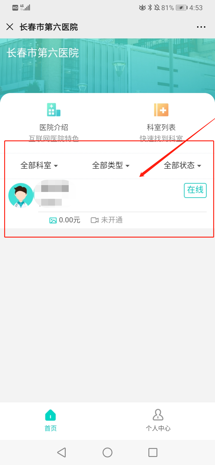 5.默认“图文问诊”,选下方“图文问诊”按键,进入在线问诊界面
