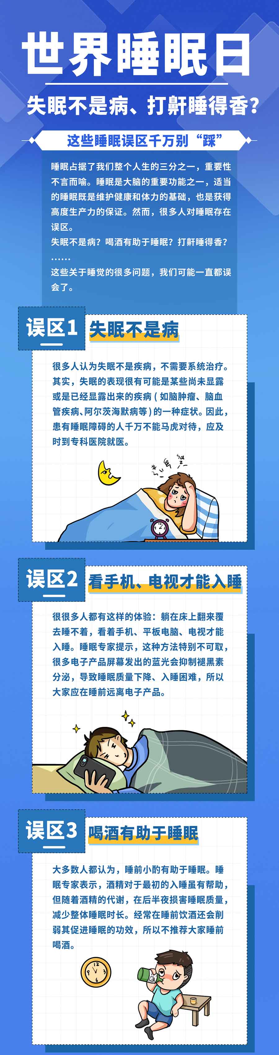 世界睡眠日 | 这些睡眠误区千万别“踩” 伦理片 |2023-03-22 08:26 上一篇父母的婚姻关系对孩子影响到底有多大?他们是问题家庭的“代理人” 下一篇@家长“撕伞型教育”真的有用吗? 返回列表 相关信息 世界睡眠日 | 关于睡眠的常见问题解析 2024-03-22 世界睡眠日 | 你我共享好睡眠,这些知识很难不“上头”! 2024-03-18 世界睡眠日 | 睡不着不一定是失眠,可能患上了睡眠时相延迟综合征 2023-03-10 世界睡眠日 | 失眠多梦怎么办?这些方法可助您连“眠”不绝 2024-03-11 只要这三招,搞定考前睡眠问题! 2019-06-06