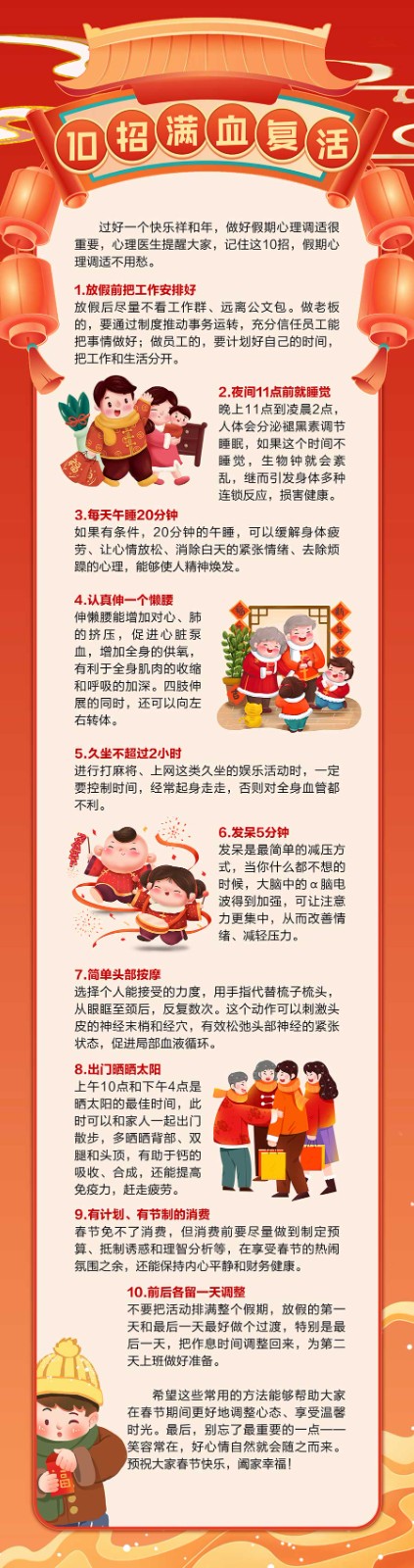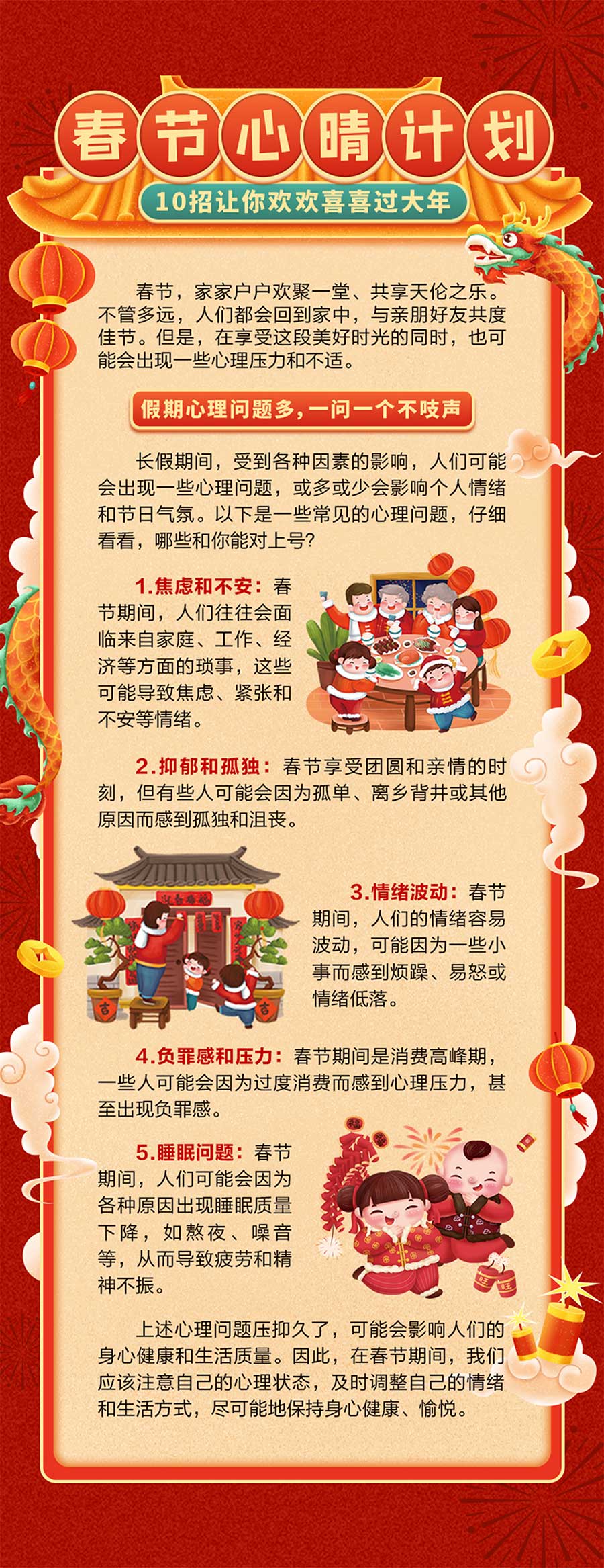 春节心晴计划,10招让你欢欢喜喜过大年 伦理片 |2024-02-11 08:43 上一篇长期带娃老人的心酸真相:身心俱疲,还患上了失眠和焦虑? 下一篇“脑子”越来越不够用?医生提示:做好这5点,帮您保护脑力! 返回列表 相关信息 @高三教师,这是属于你们的减压手册 2020-06-28 只要这三招,搞定考前睡眠问题! 2019-06-06 年关将至,3种方法教您应对春节焦虑症 2023-01-14 轻轻松松上考场!中考减压,掌握这七招 2019-06-27 一天到晚总是焦虑?!医生3招帮你寻回快乐 2024-01-15